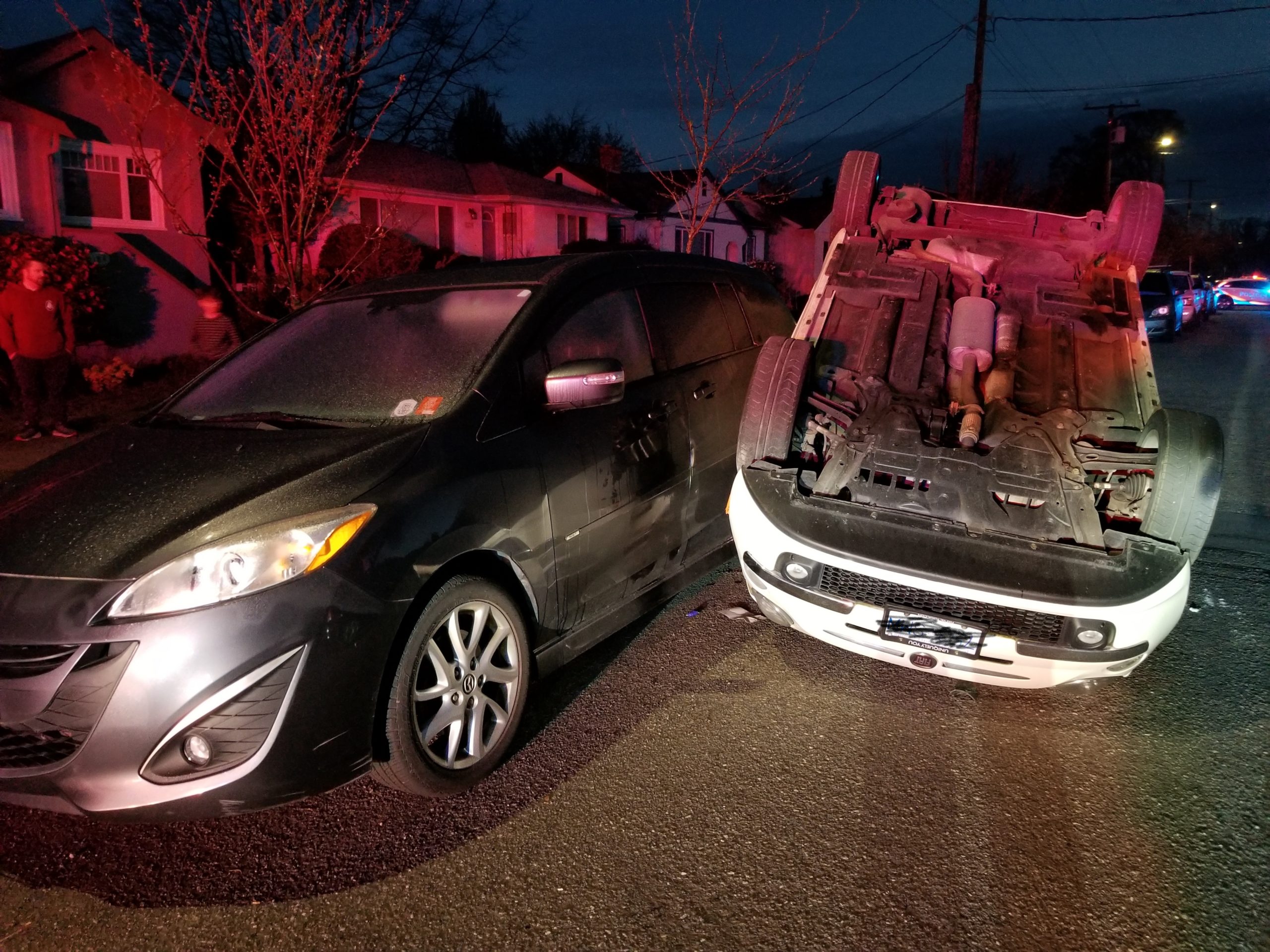 Crash Landing Fiat Flips Onto Its Roof After Colliding With Parked Car In Oak Bay